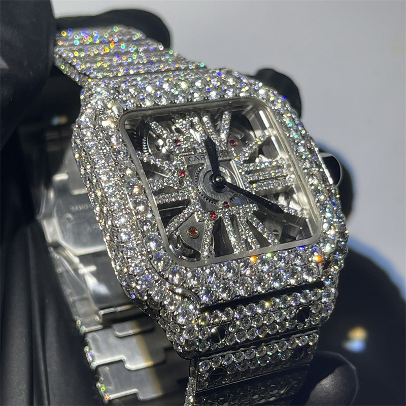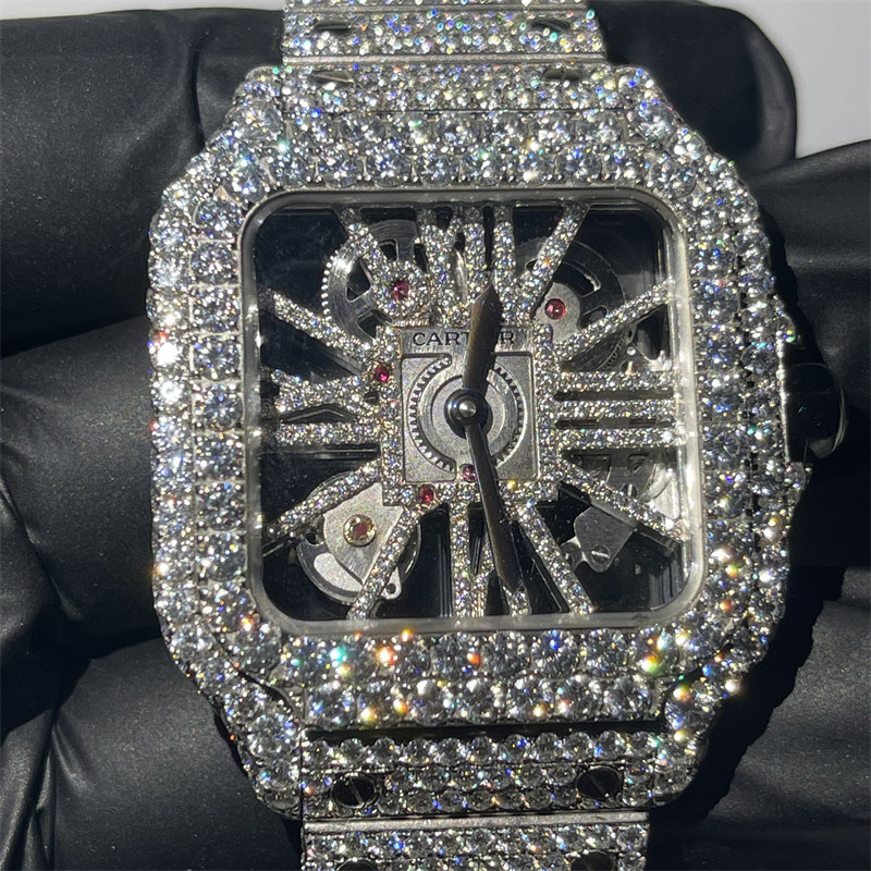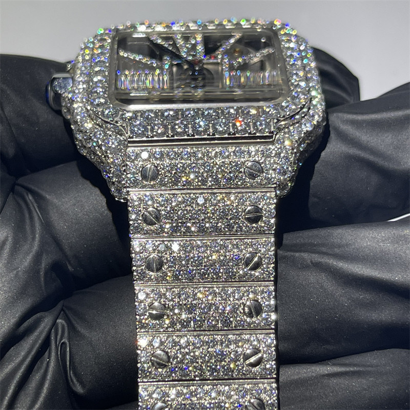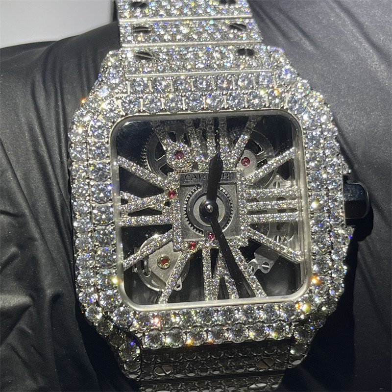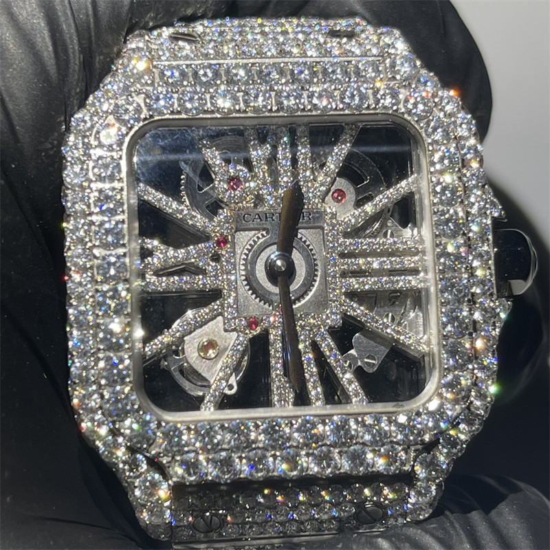 DEF VVS Moissanite encheu o relógio | Moldura do relógio do moissanite do relógio de Skeleton Iced Out Moissanite
