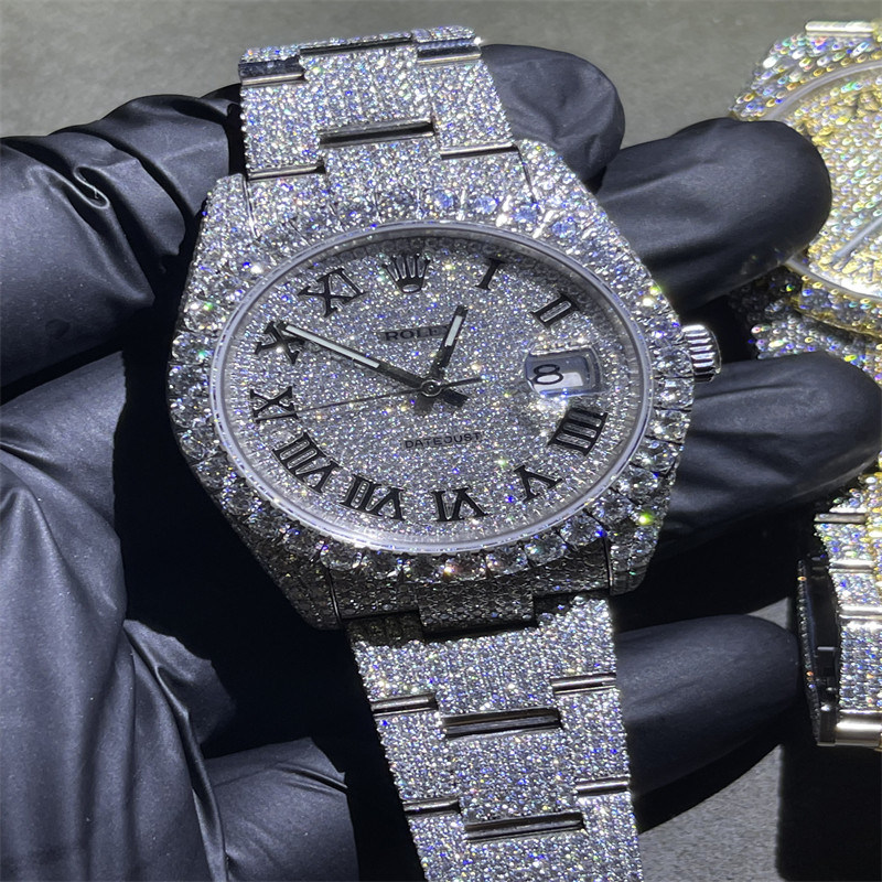 DEF VVS Moissanite encheu o relógio | congelou para fora do relógio de Moissanite | Relógio completo de Bussdown