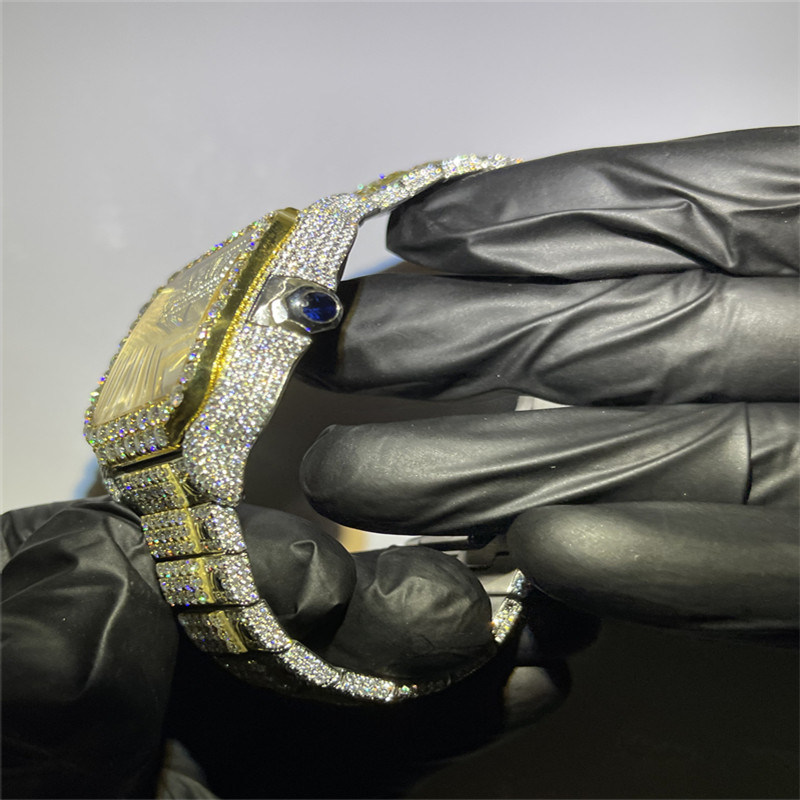 os buss dos homens para baixo congelaram inteiramente para fora o relógio mais do moissanite do relógio luxuoso do diamante do moissanite